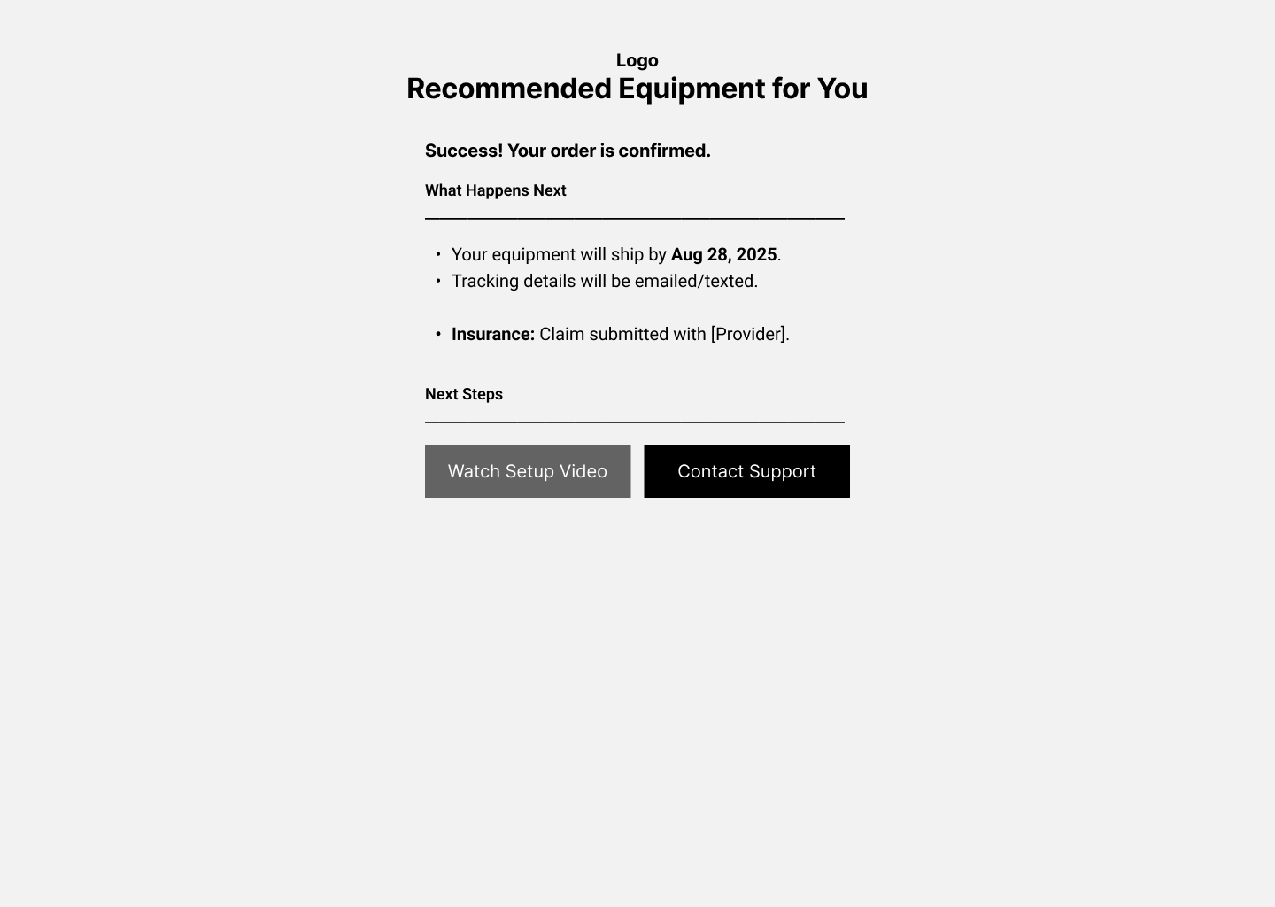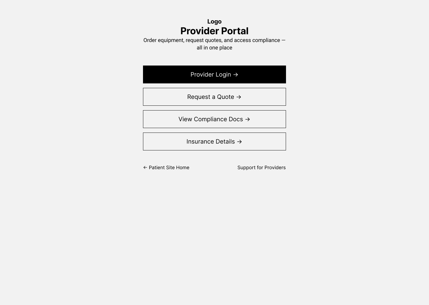 I explored homepage layouts that placed the primary call to action front and center, created space for a patient story, and clarified the two main pathways: booking a test or browsing equipment. Wireframes were built to illustrate these flows, with patient booking broken into a clear three-step journey and provider ordering supported by filters, search, and quick access to documents.